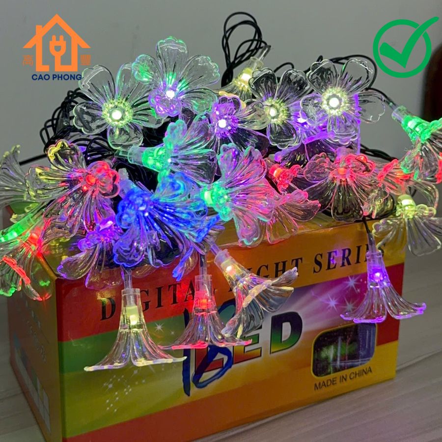 Dây đèn chớp led trang trí bông hoa tulip 5 cánh dài 10m